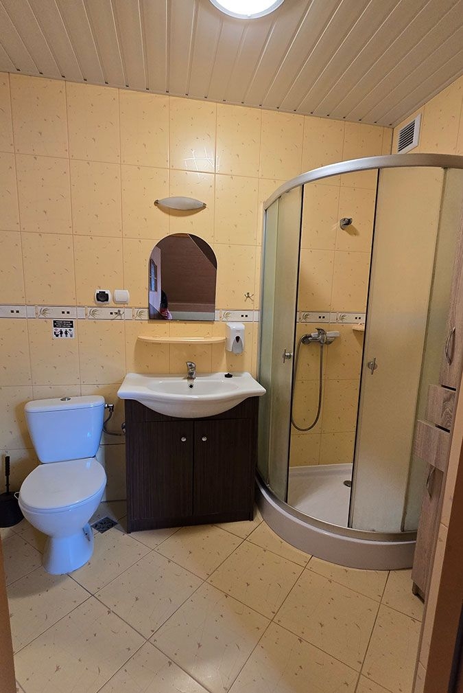 z pełnym węzłem sanitarnym oraz TV i lodówką.